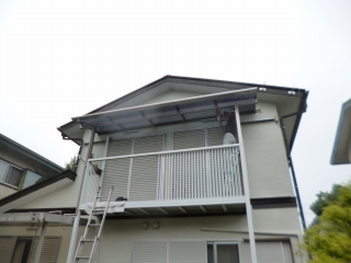 今年の三月の「雪」で 曲がってしまったベランダ屋根。。。