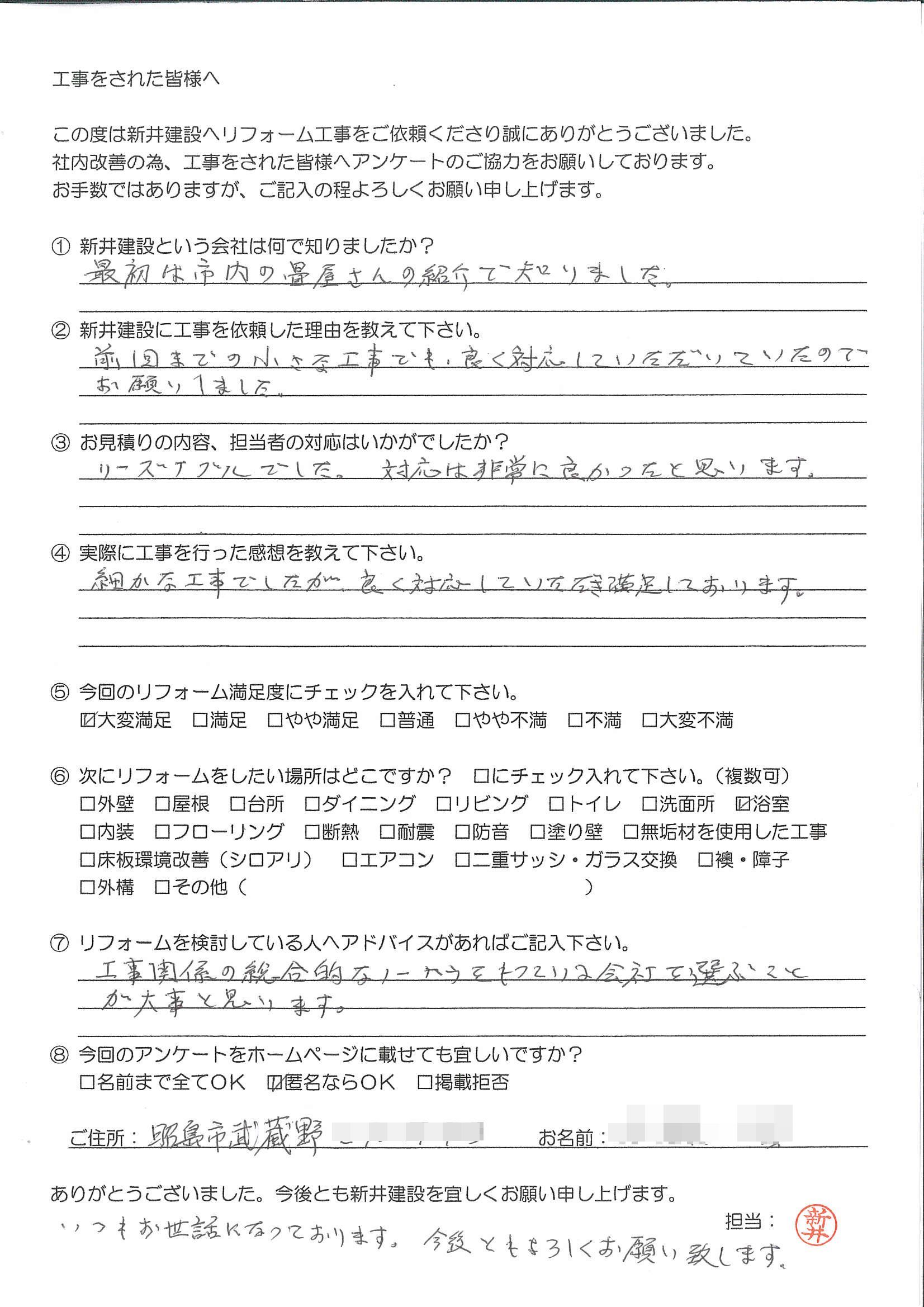 先日、リフォーム工事を担当させていただいた昭島市のK様から