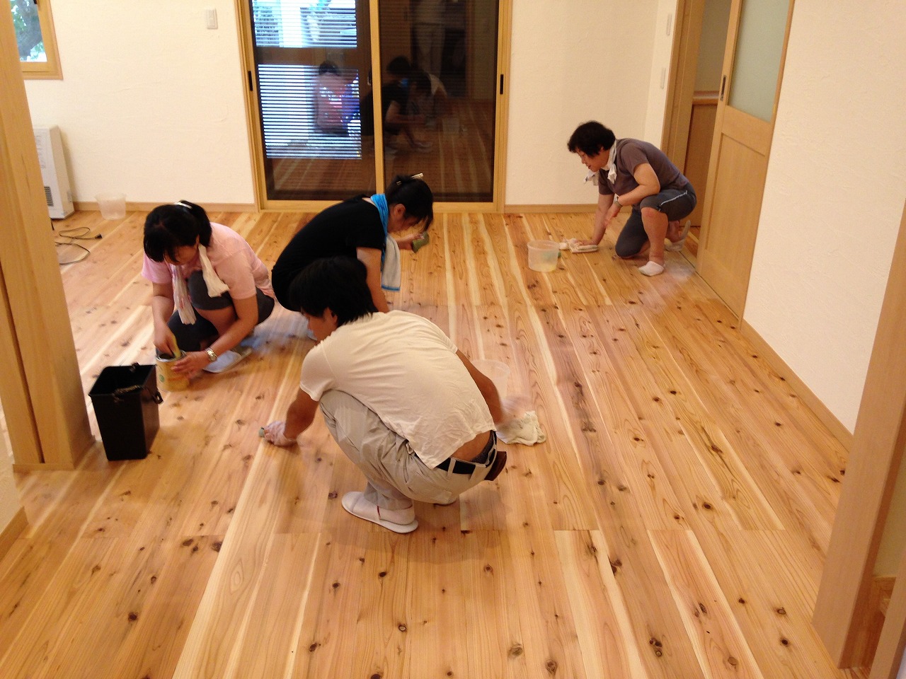 ご家族総出で、蜜蝋ワックス掛けをしていただきました。