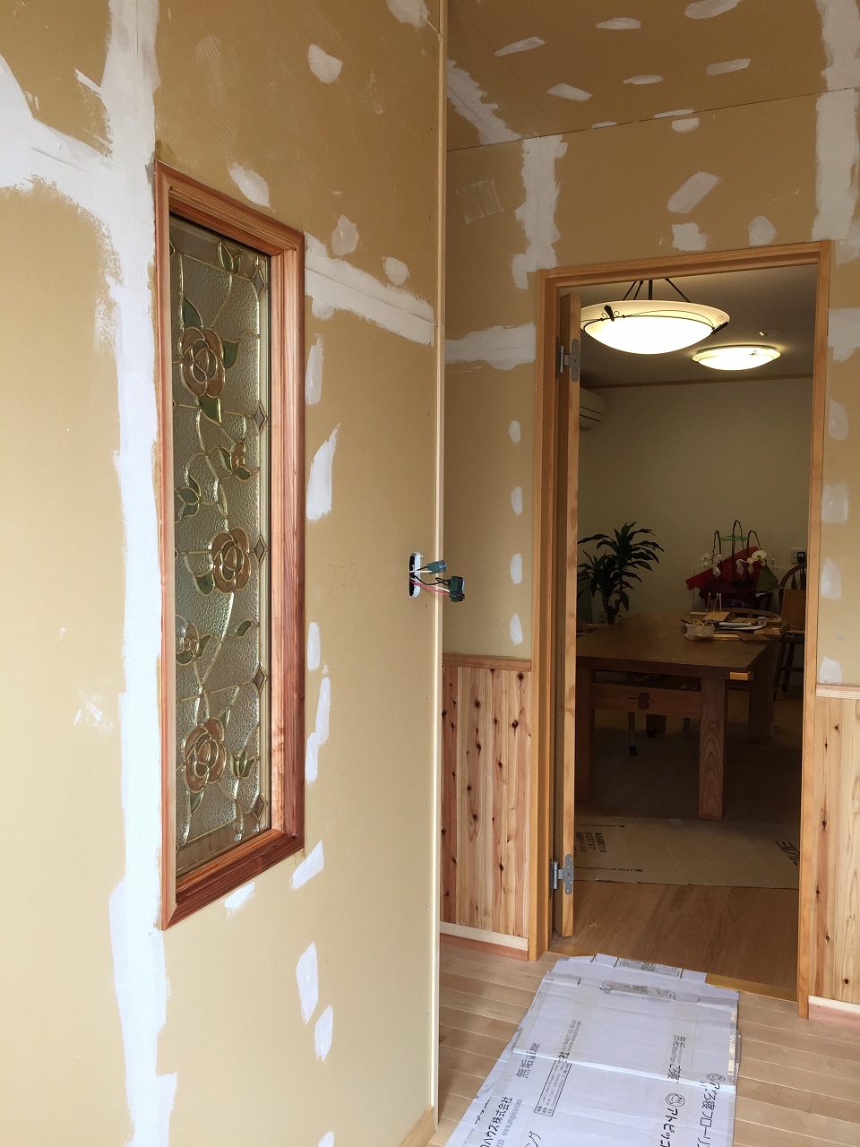先日、念願だったステンドグラスを玄関ホールにはめ込みました。