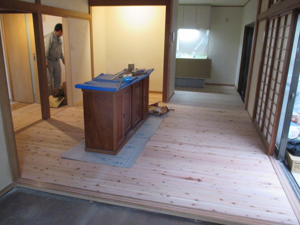 先日、私が担当したガスコンロとウォシュレットの交換、廊下の床板リフォーム。