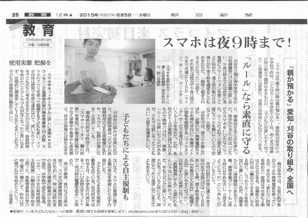 今日の新聞記事で、最初にルールを決めてから与えることが大切だと感じました。