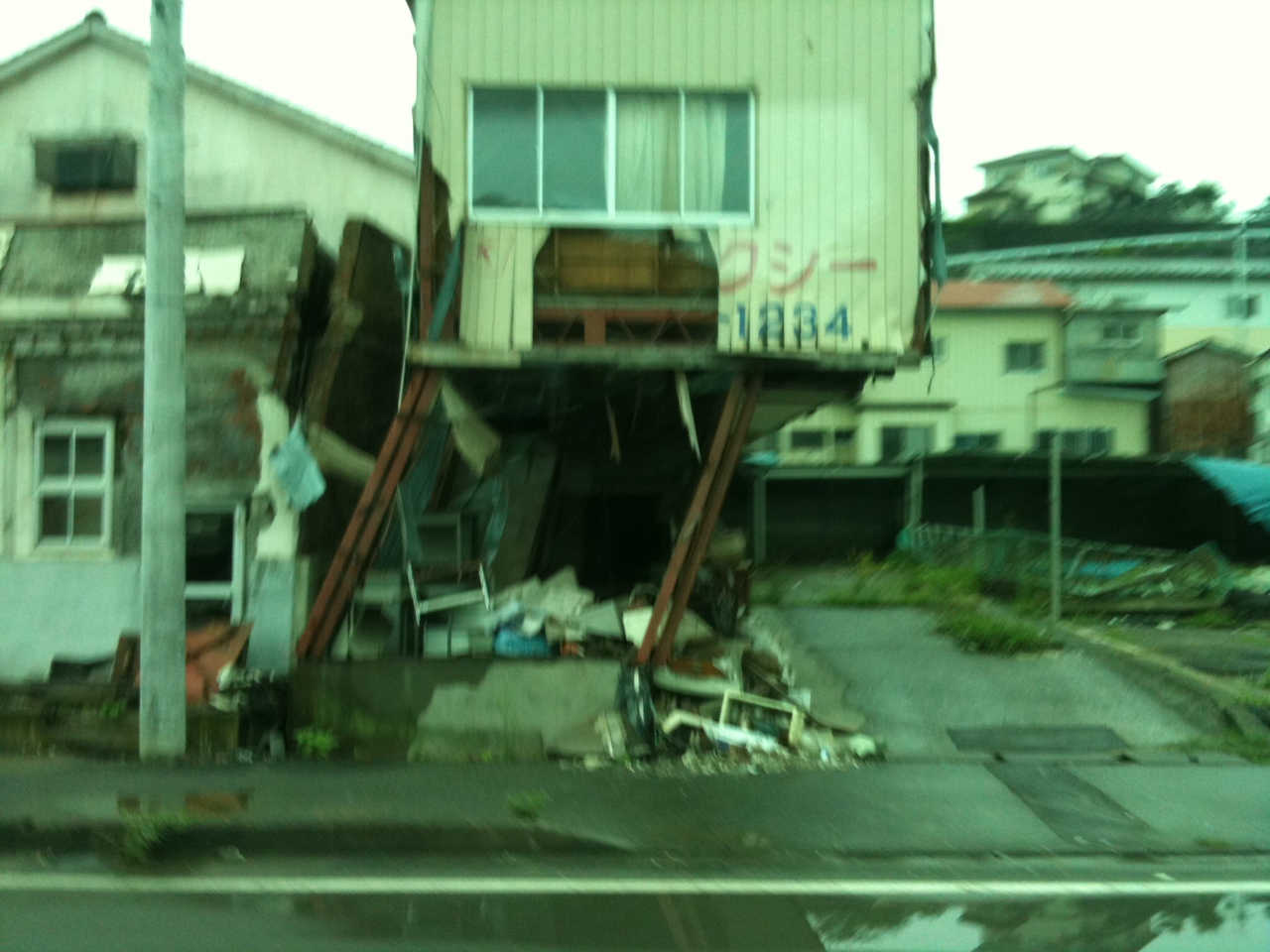 港の周囲の建物を見ると津波の破壊力に恐れを感じます。完全に1階が流されています。津波は2階にまで及んだようです。