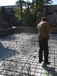 昨日までに配筋作業を終え、朝から検査を行ないました。