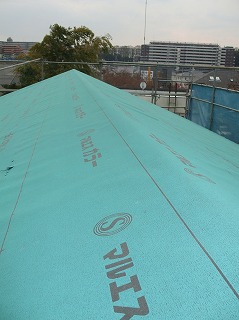 S邸では昨日、屋根にルーフィングを敷きましたので一安心です。